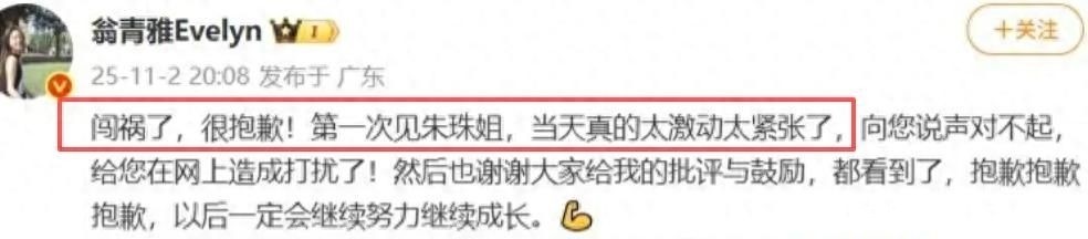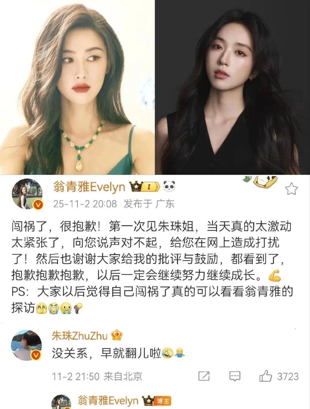 翁青雅向朱珠道歉:本应该从从容容,非要把自己搞得“连滚带爬”