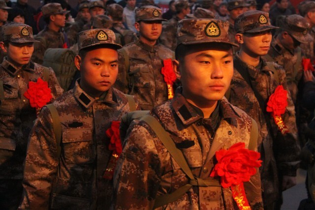 中国老百姓一向很有军队荣誉感,所以迷彩服和大红花,那是国家给予的光环。